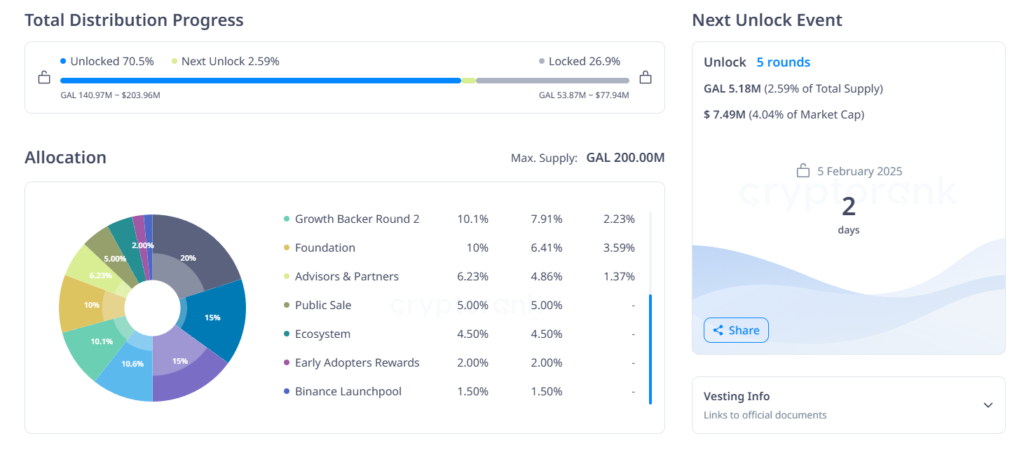 - Số lượng token mở khóa: 5.18 triệu GAL