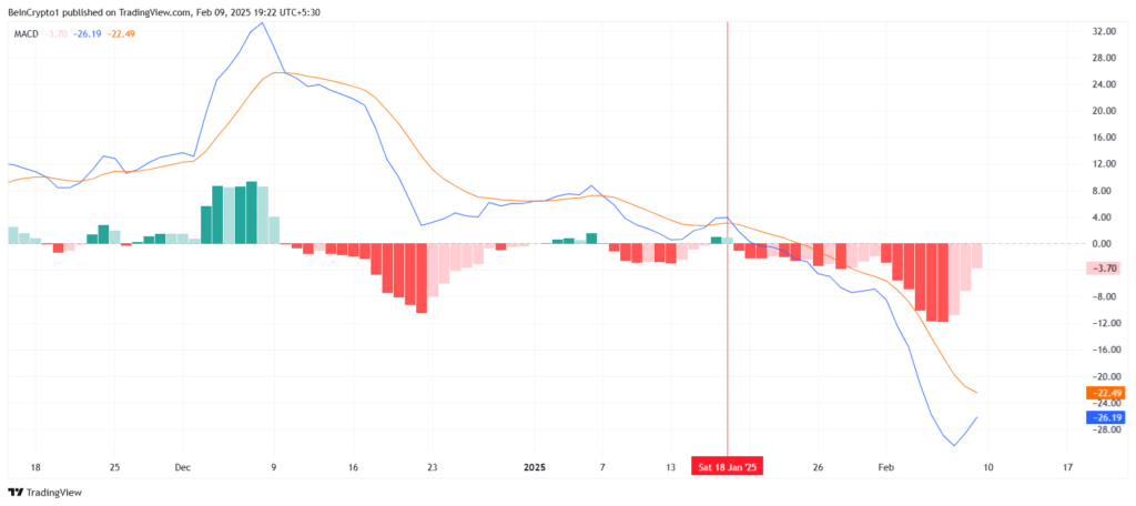 Chỉ báo Moving Average Convergence Divergence (MACD) đang thể hiện một tín hiệu cho thấy sự nhạt nhòa của động lực giảm giá đối với BNB. Hiện tại, đường MACD dường như đang tiến gần đến việc giao cắt với đường tín hiệu, một tình huống có khả năng phản ánh sự chuyển tiếp từ xu hướng giảm sang xu hướng tăng.