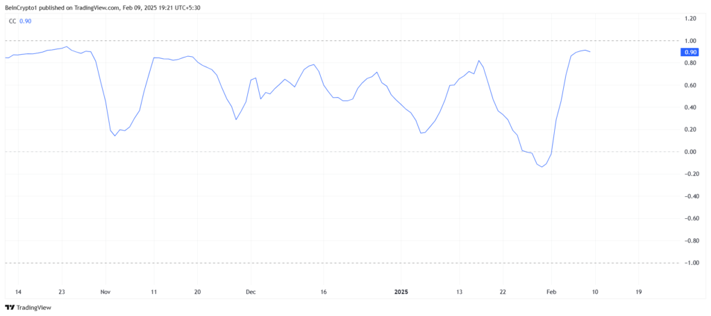 BNB có một mối tương quan mạnh mẽ với Bitcoin (BTC), đạt mức 0.90. Điều này có nghĩa là diễn biến giá của BNB thường phản ánh theo chiều hướng tương tự như Bitcoin, đồng tiền điện tử hàng đầu hiện nay. Với việc Bitcoin đang cố gắng giữ ổn định trên ngưỡng hỗ trợ 100,000 USD, khả năng này có thể tạo điều kiện thuận lợi cho BNB, qua đó nâng cao triển vọng cho một đợt tăng trưởng bền vững.